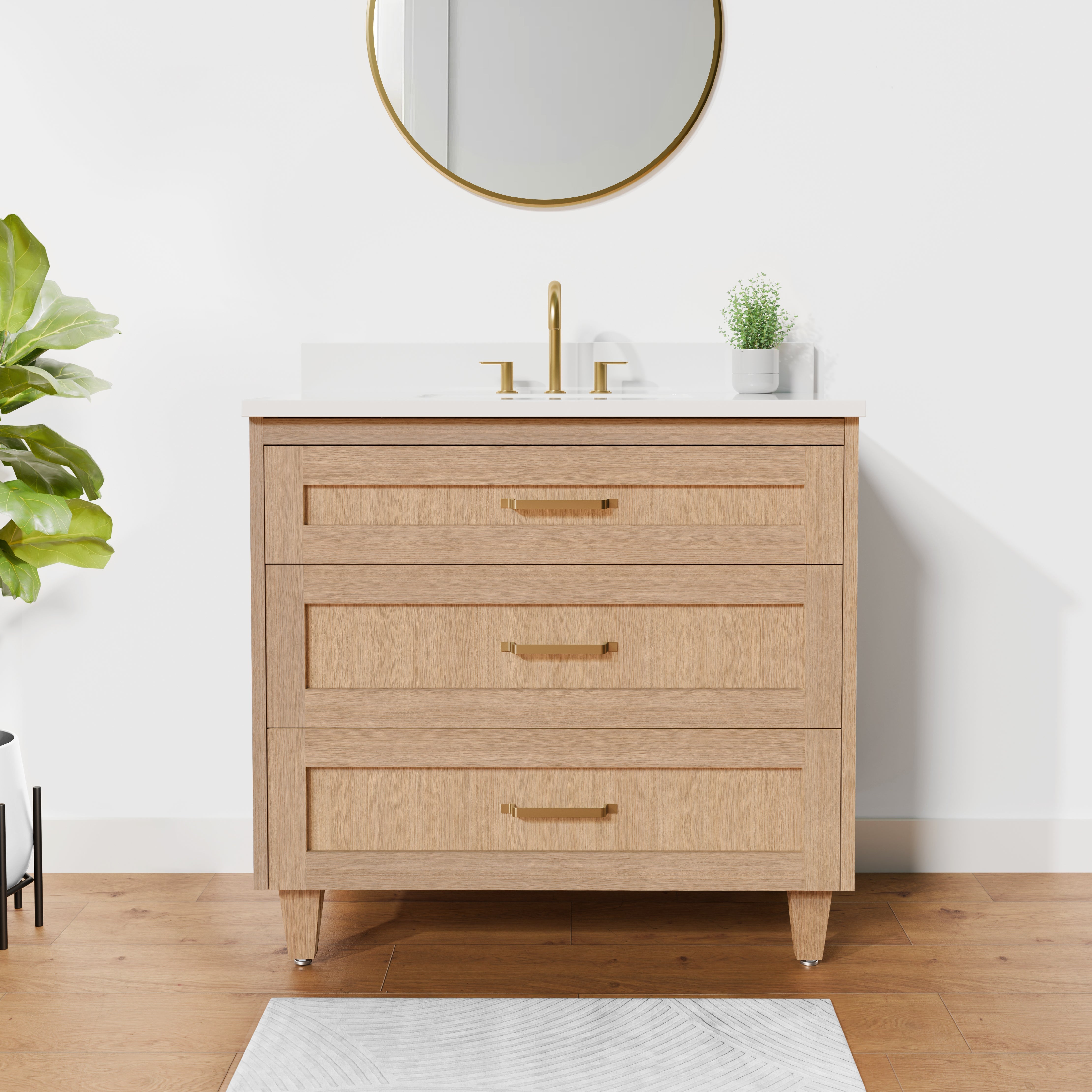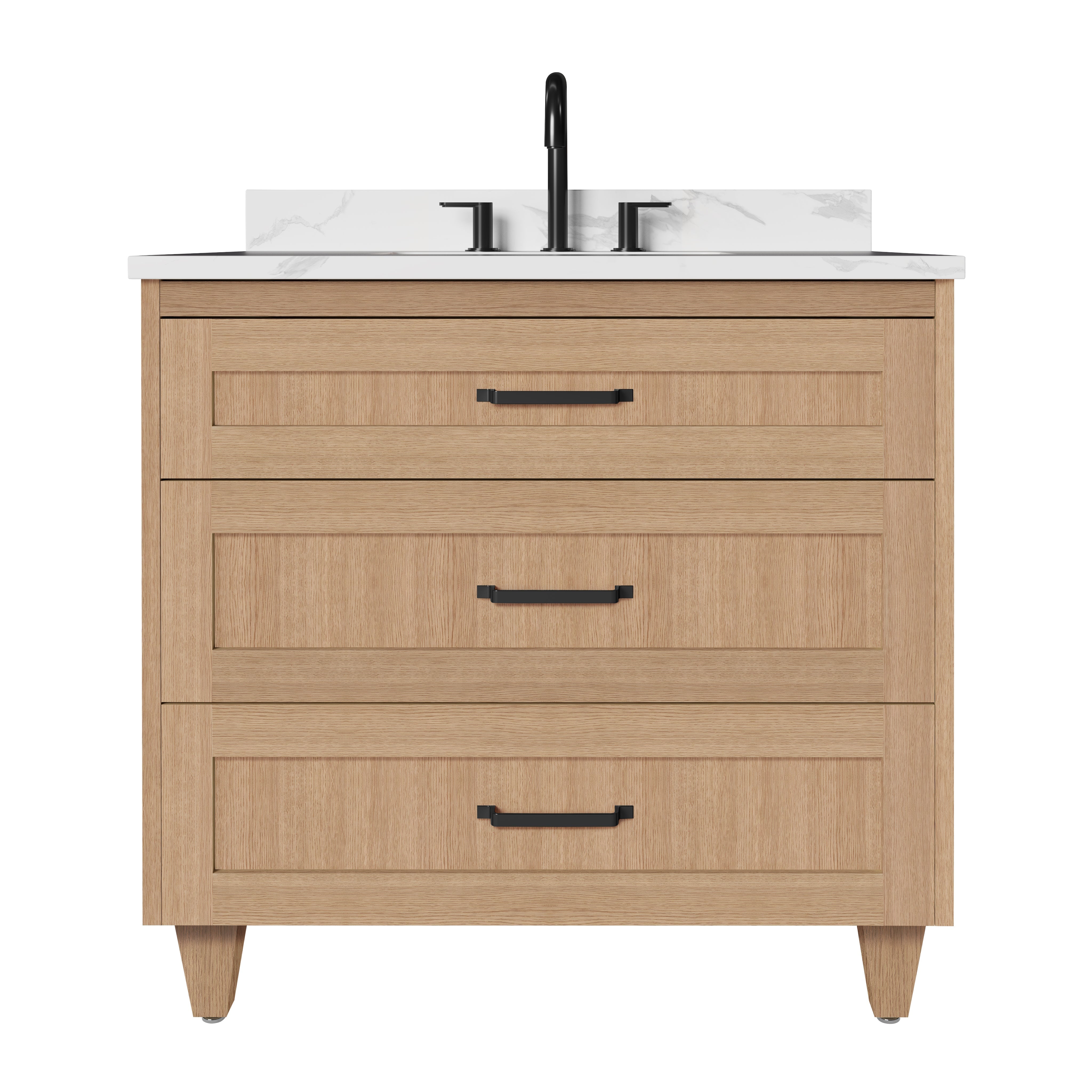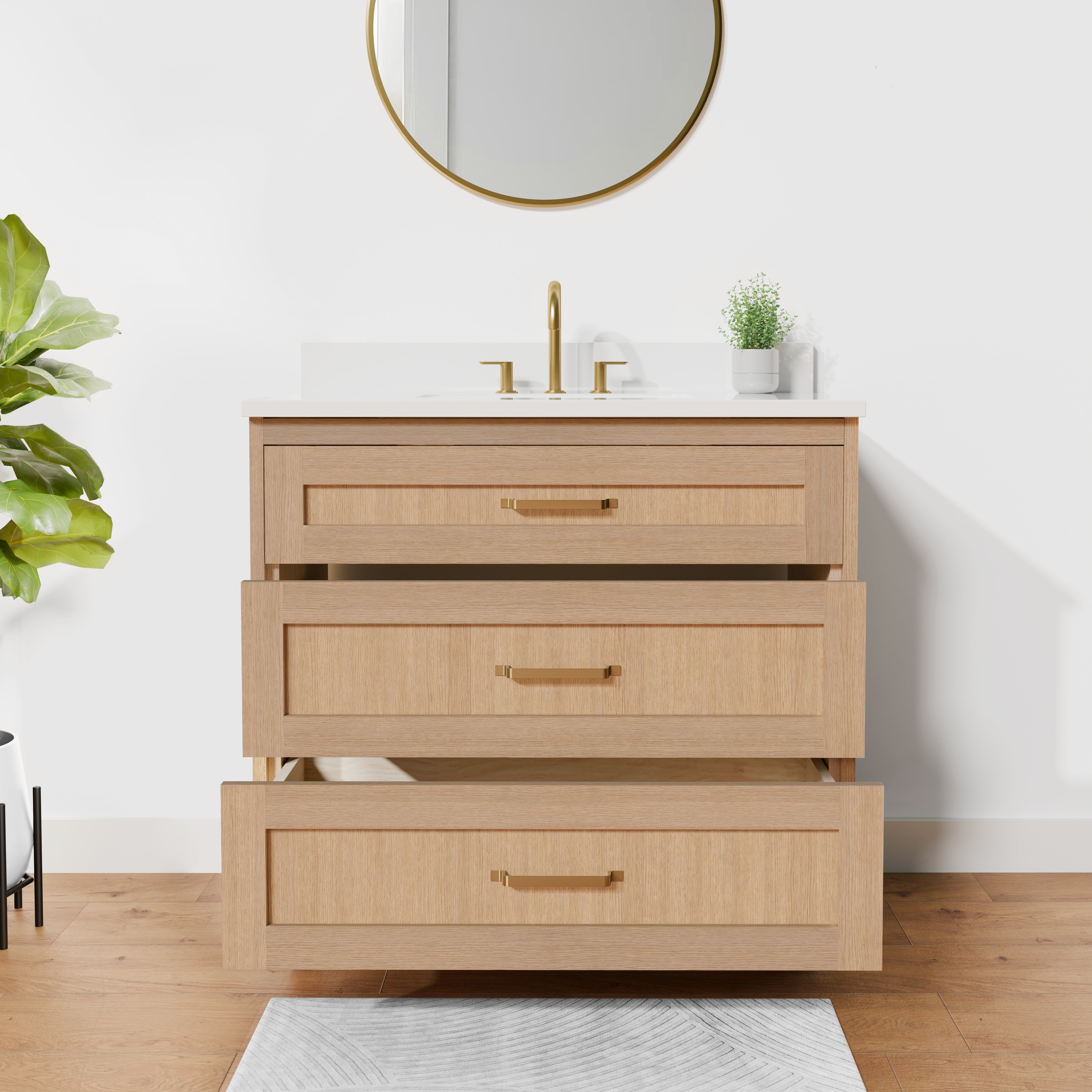 Arlo 36" Solid-Wood Vanity with Quartz Countertop - 3 Drawers