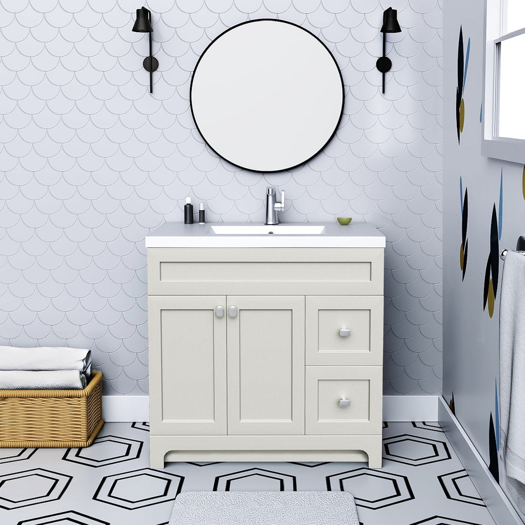 - MODERN FREESTANDING DESIGN: The sleek 36-inch freestanding vanity with sink features an easy-to-clean design, creating a contemporary aesthetic while saving space in standard bathrooms