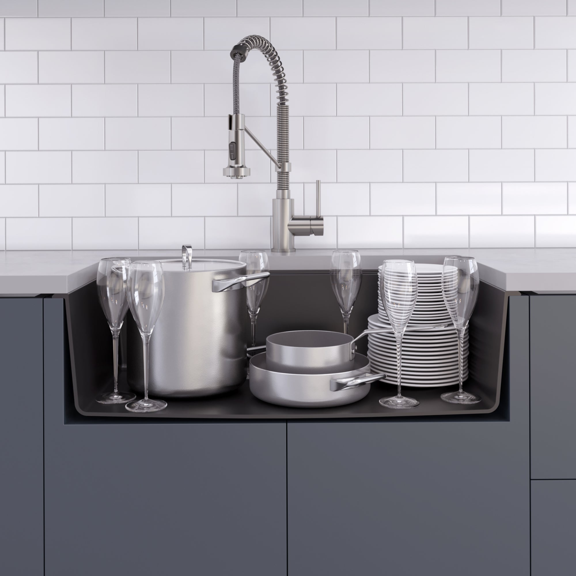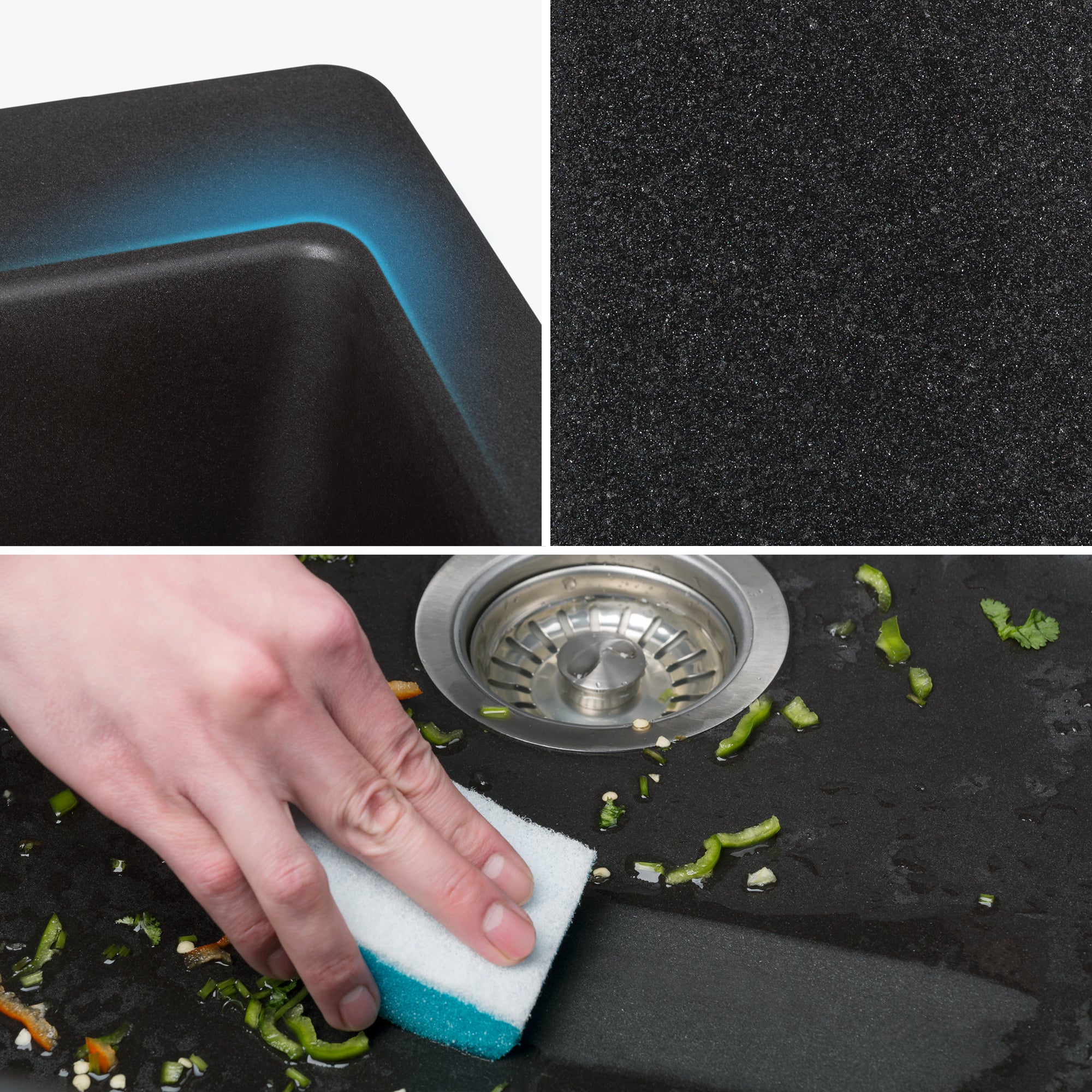 - A QUIETER KITCHEN SINK: Thick stone like material engineered to eliminate vibration and noise when the sink is in use NON FADING COLOR with UV protection for a rich and consistent hue that will not dull over time