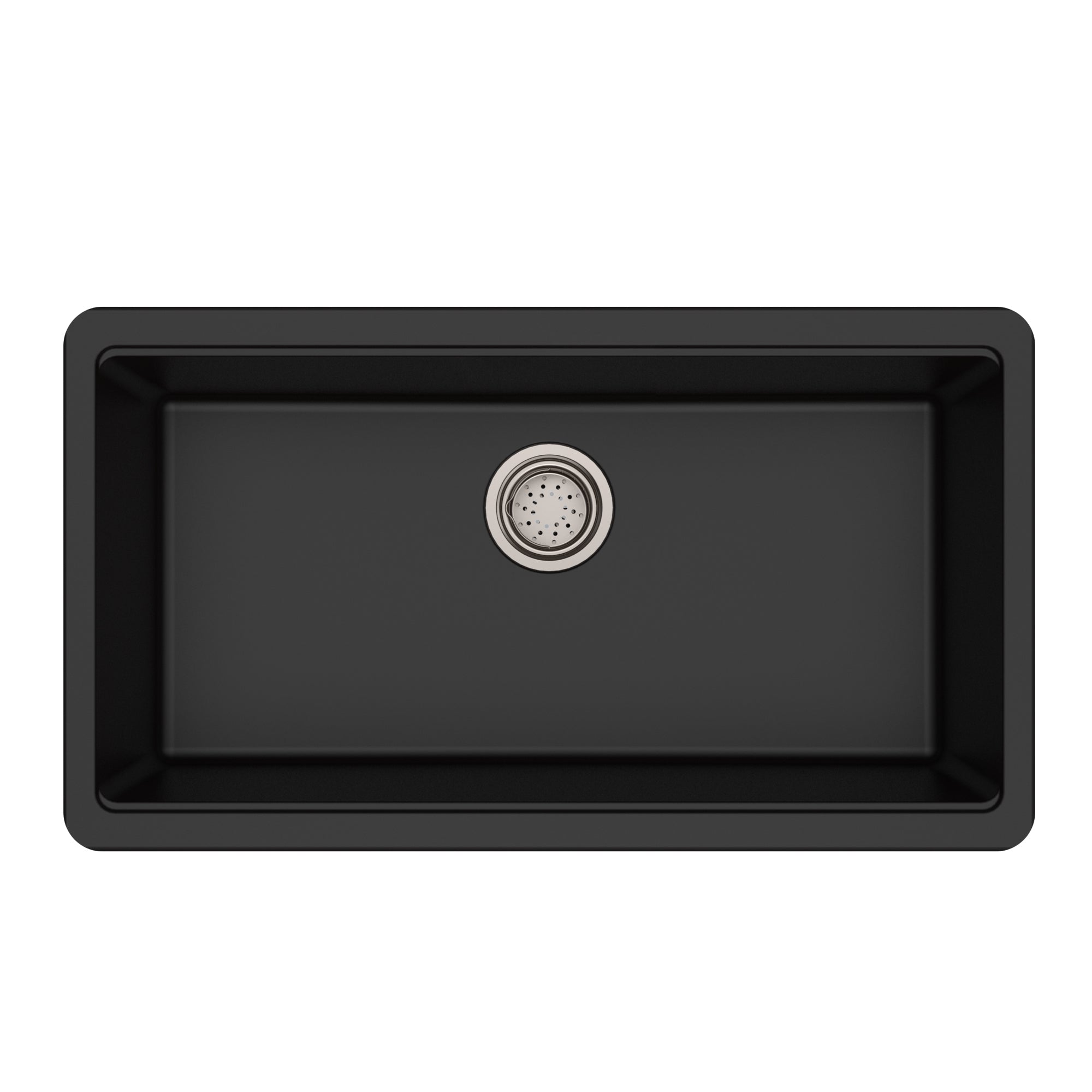 Kraus undermount granite sinks create an instant style upgrade for the kitchen. Constructed from 80% natural granite, with the look and feel of real stone, these modern kitchen sinks look striking in a variety of settings. Clean lines and thoughtful design details highlight the organic elegance of granite, for an eye-catching look with contemporary appeal. The extra-deep basins accommodate large dishes with ease, while the gently rounded corners make sink maintenance simple. Each non-porous, naturally hygienic sink is protected with a thermal finishing process, creating a surface that is highly resistant to heat, chemicals, scratching, chipping, and discoloration. This single bowl sink provides a lifetime of functionality with refined style. For added convenience, a basket strainer drain assembly and complimentary towel are included free with purchase. Constructed from premium stainless steel, the top-quality basket strainer assembly creates a tight seal to prevent food and debris from clogging the drainpipe. For easy installation, all mounting hardware is provided. Experience Kraus Quality and bring your best kitchen ideas to life.