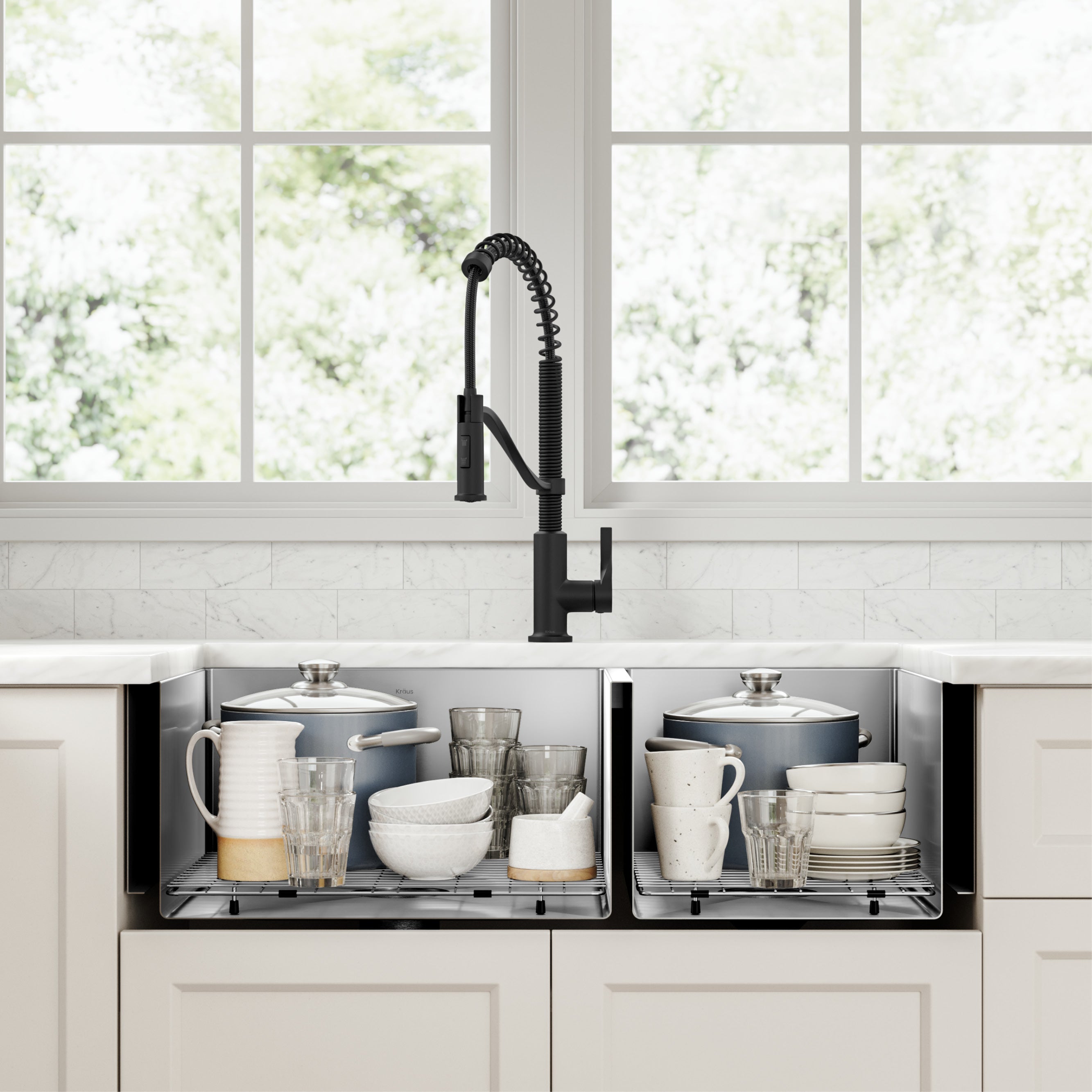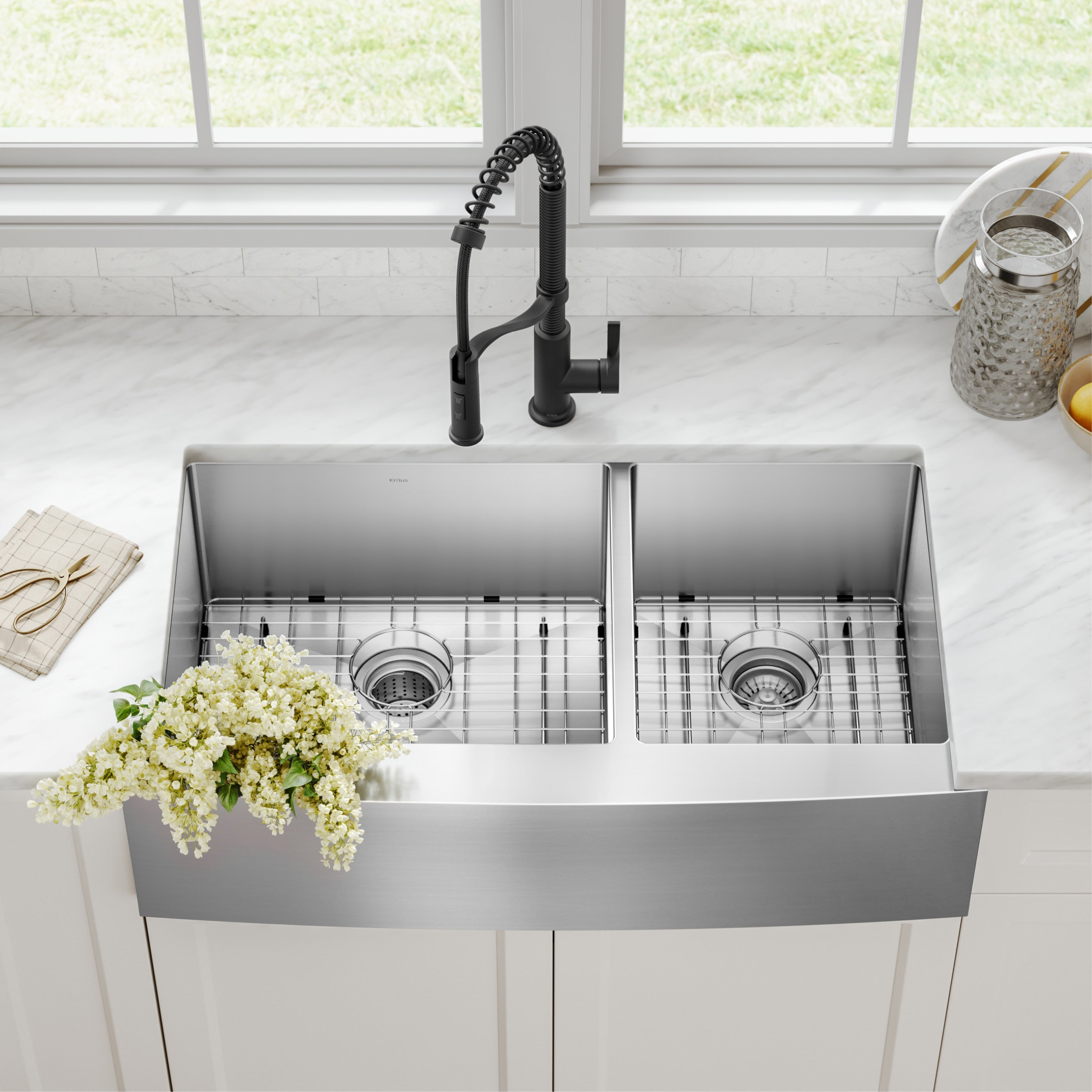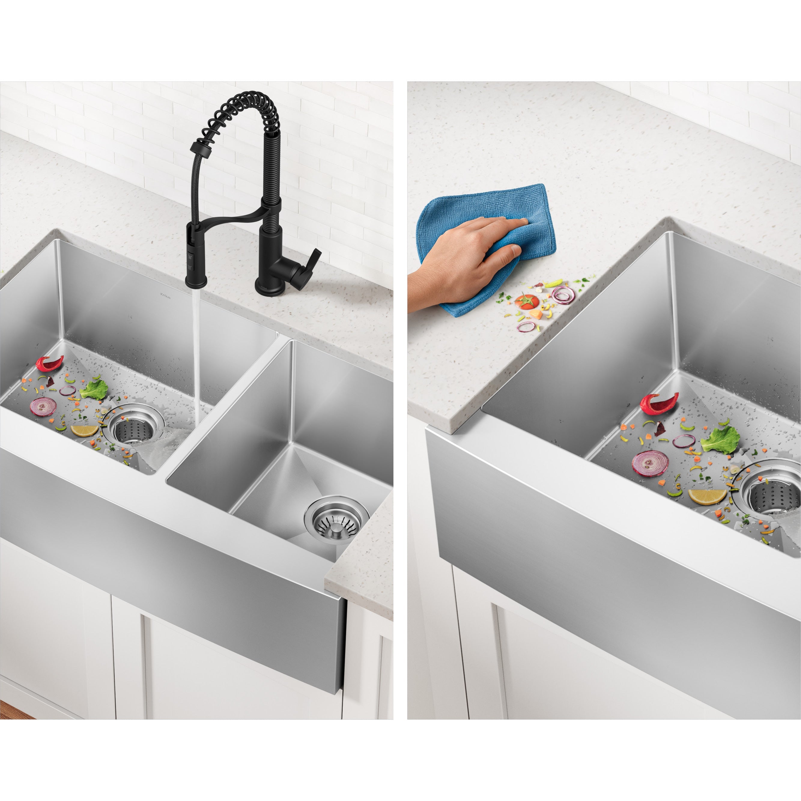 Kraus Standart PRO 36" x 19" 60/40 Double Bowl Stainless Steel Farmhouse Kitchen Sink