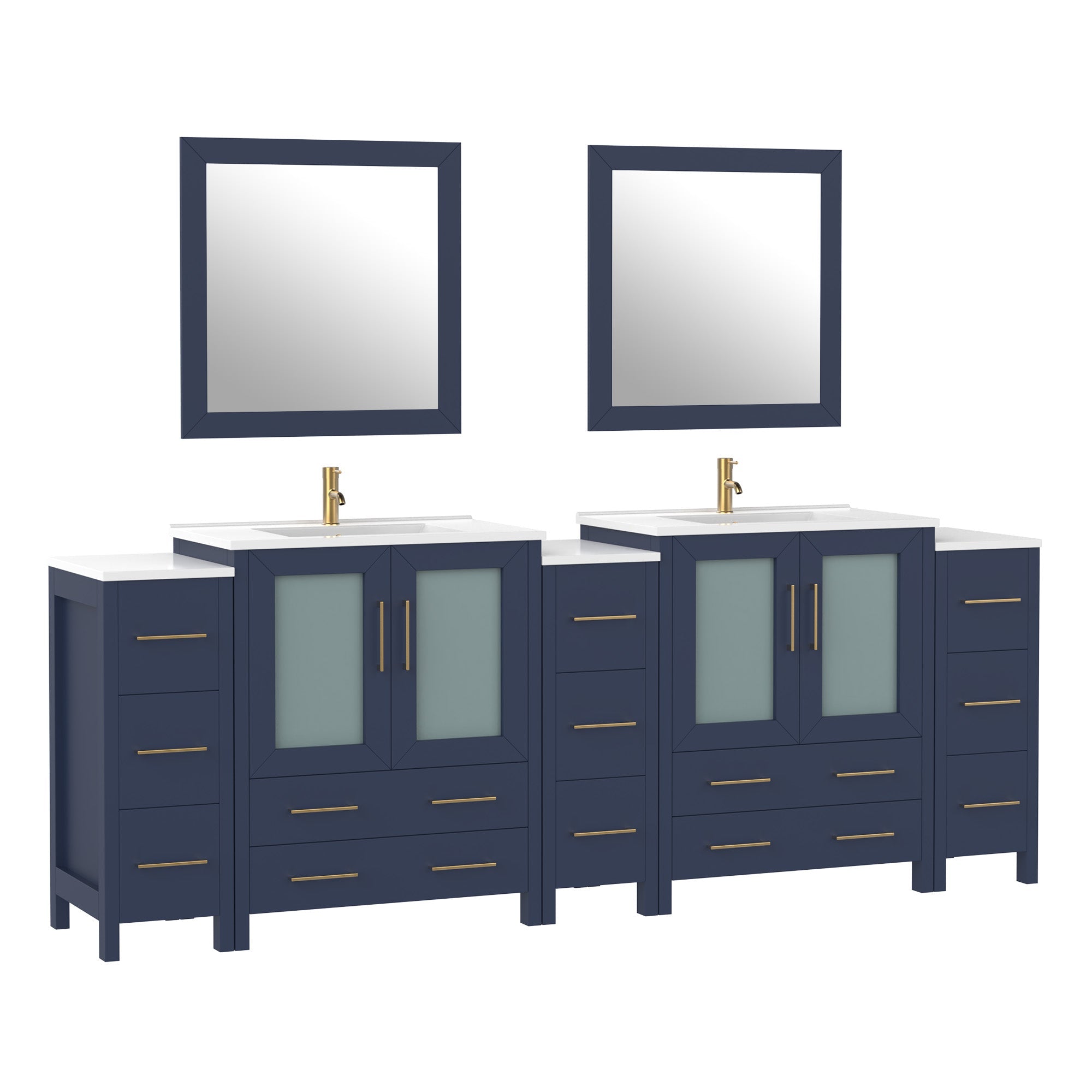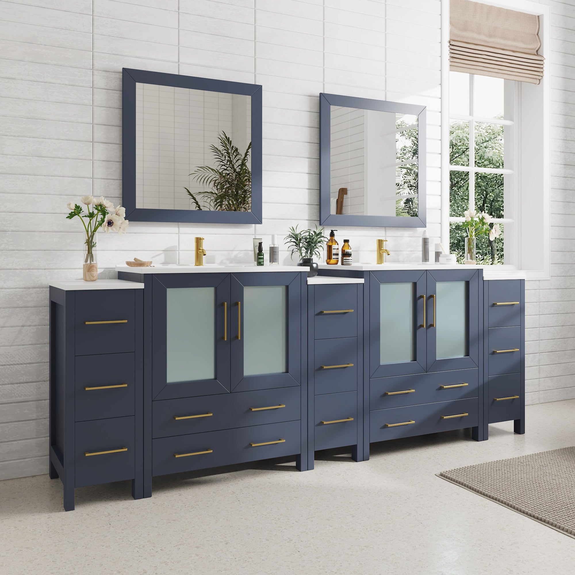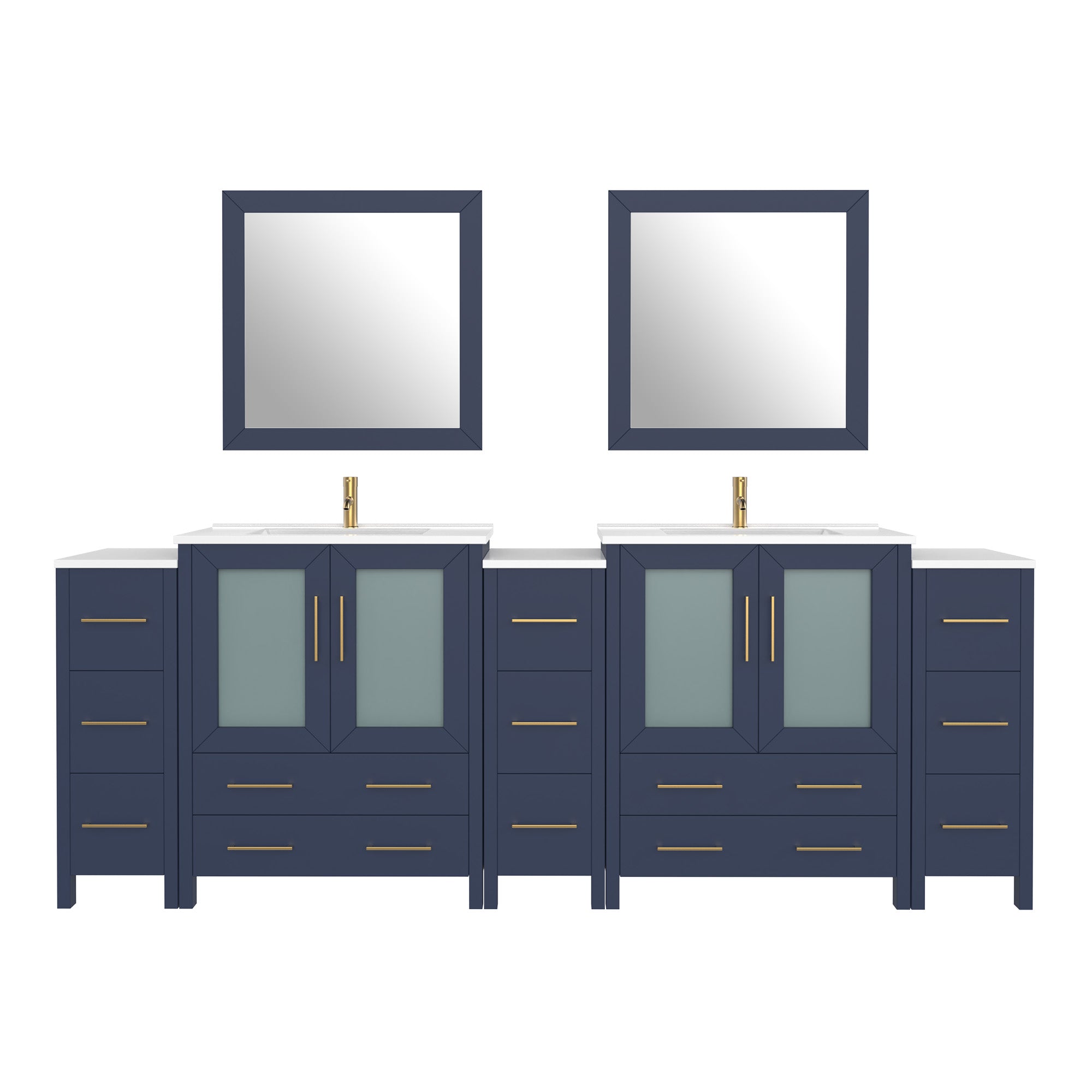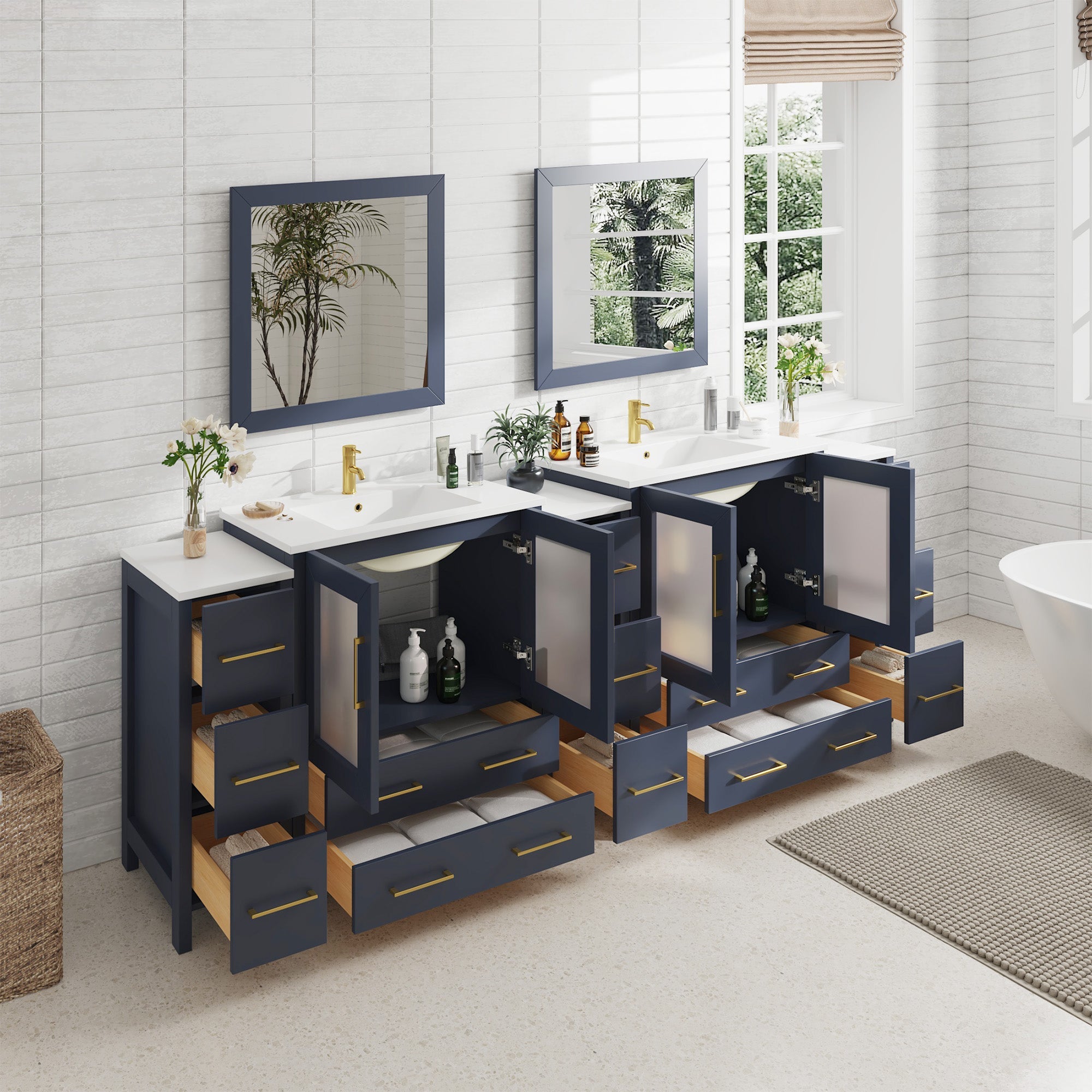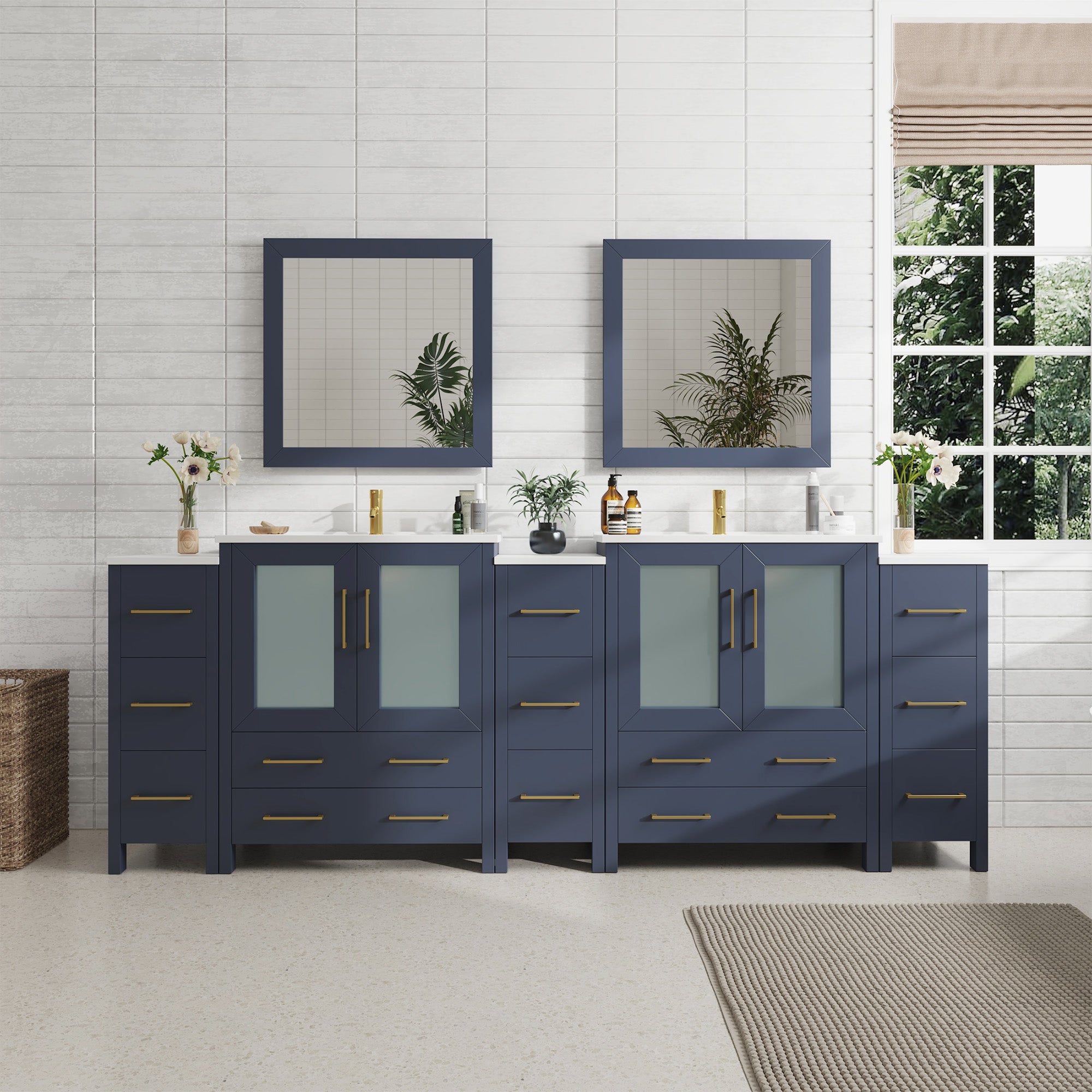 Vanity Art London 96" Double Sink Bathroom Vanity Set with Ceramic Top and Mirrors - 3 Side Cabinets