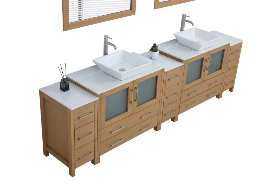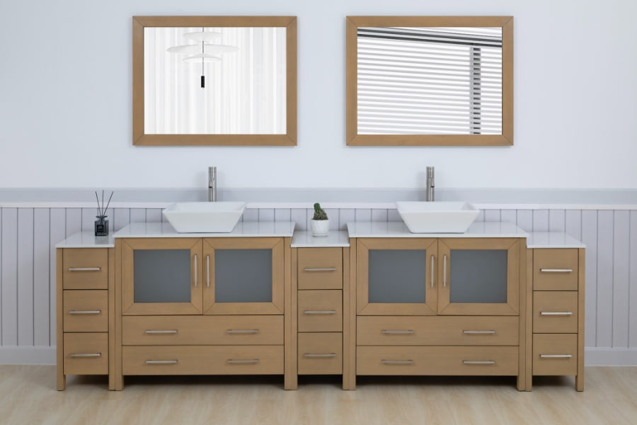 - AMPLE STORAGE OPTIONS: With a combination of shelving and dovetail drawers, our vanity bathroom cabinet offers generous storage space. Customize your storage needs with optional drawer units