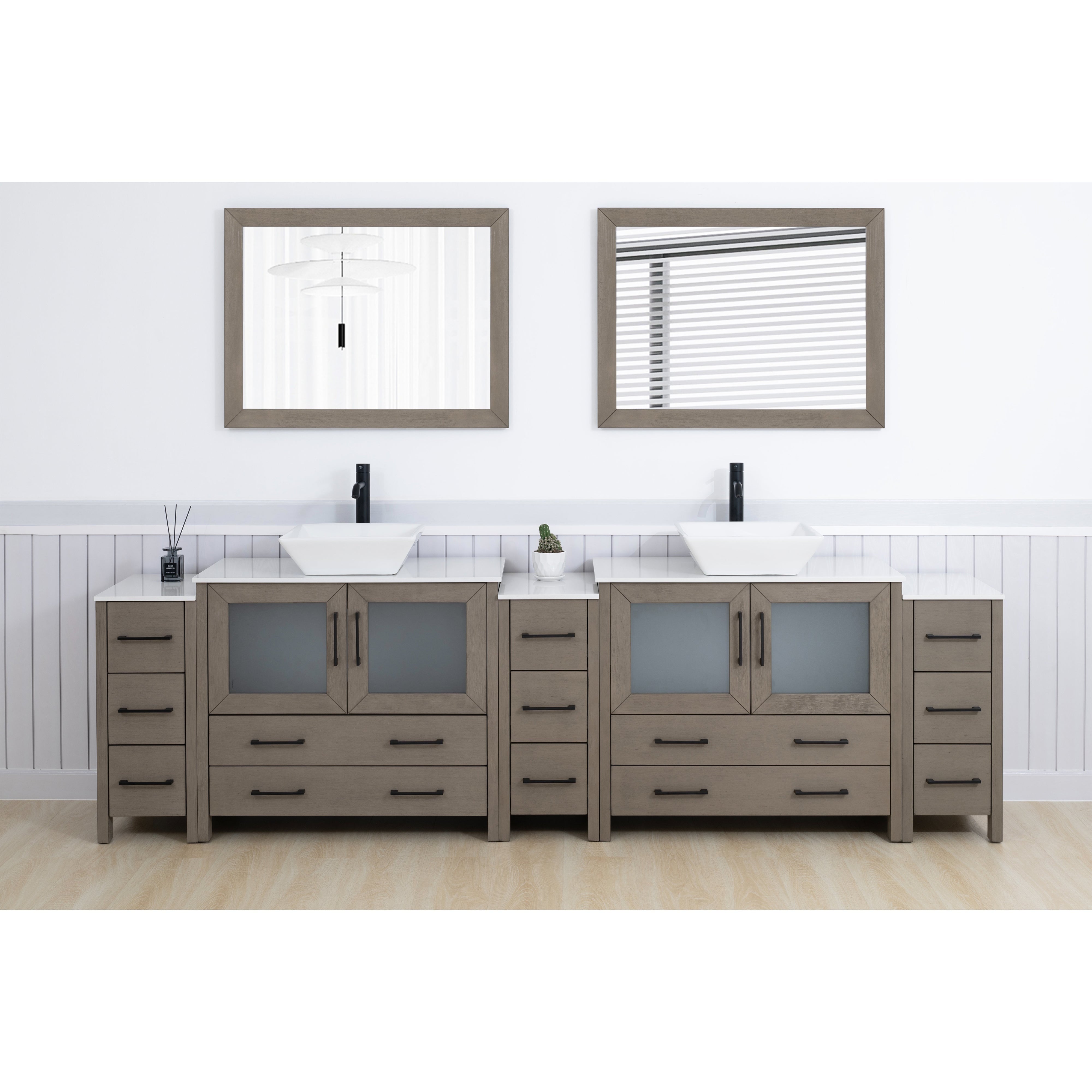 Vanity Art Monaco 108" Double Basin Bathroom Vanity with White Engineered Marble Top and Mirror