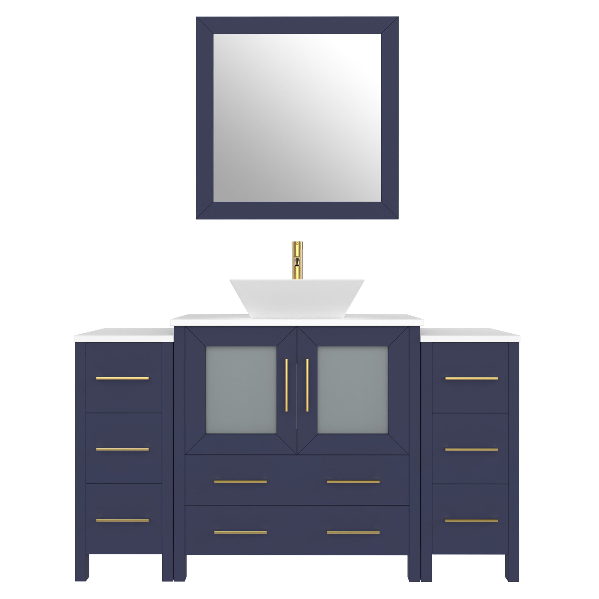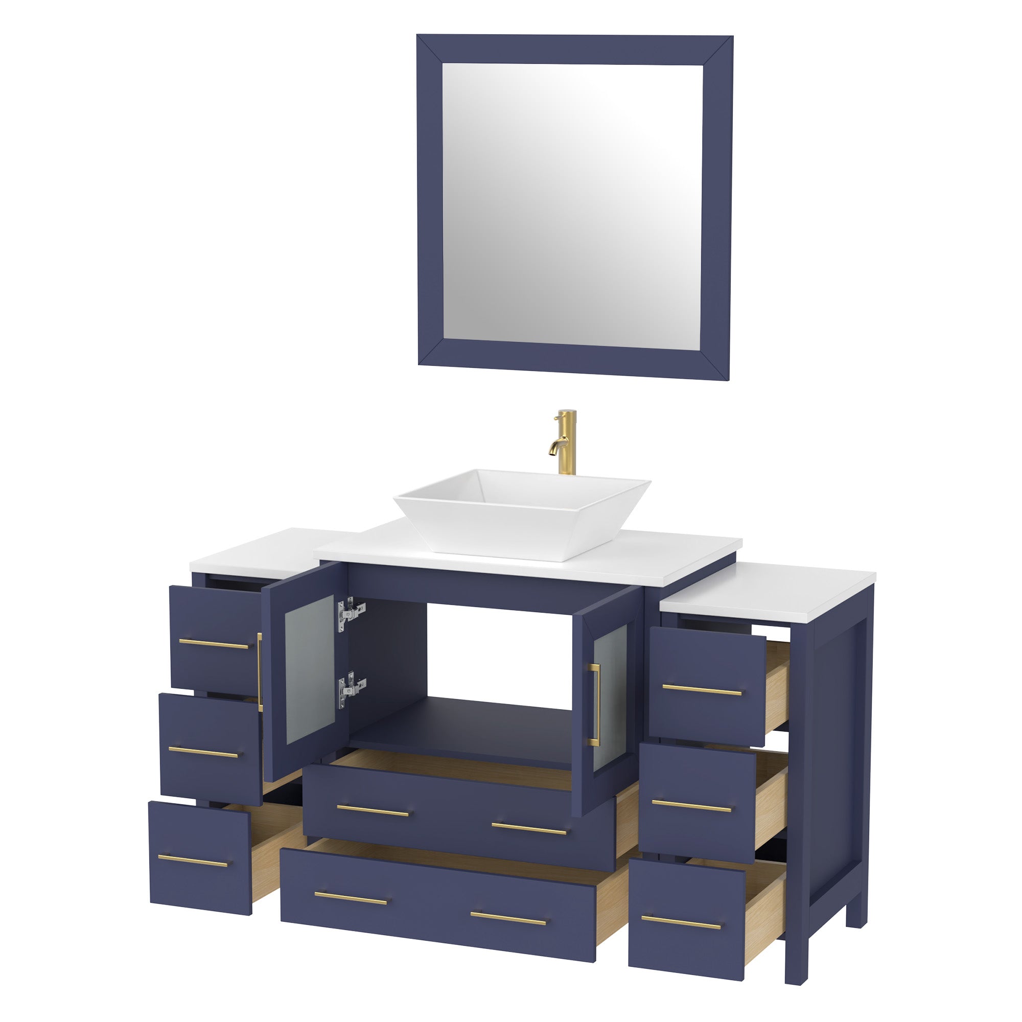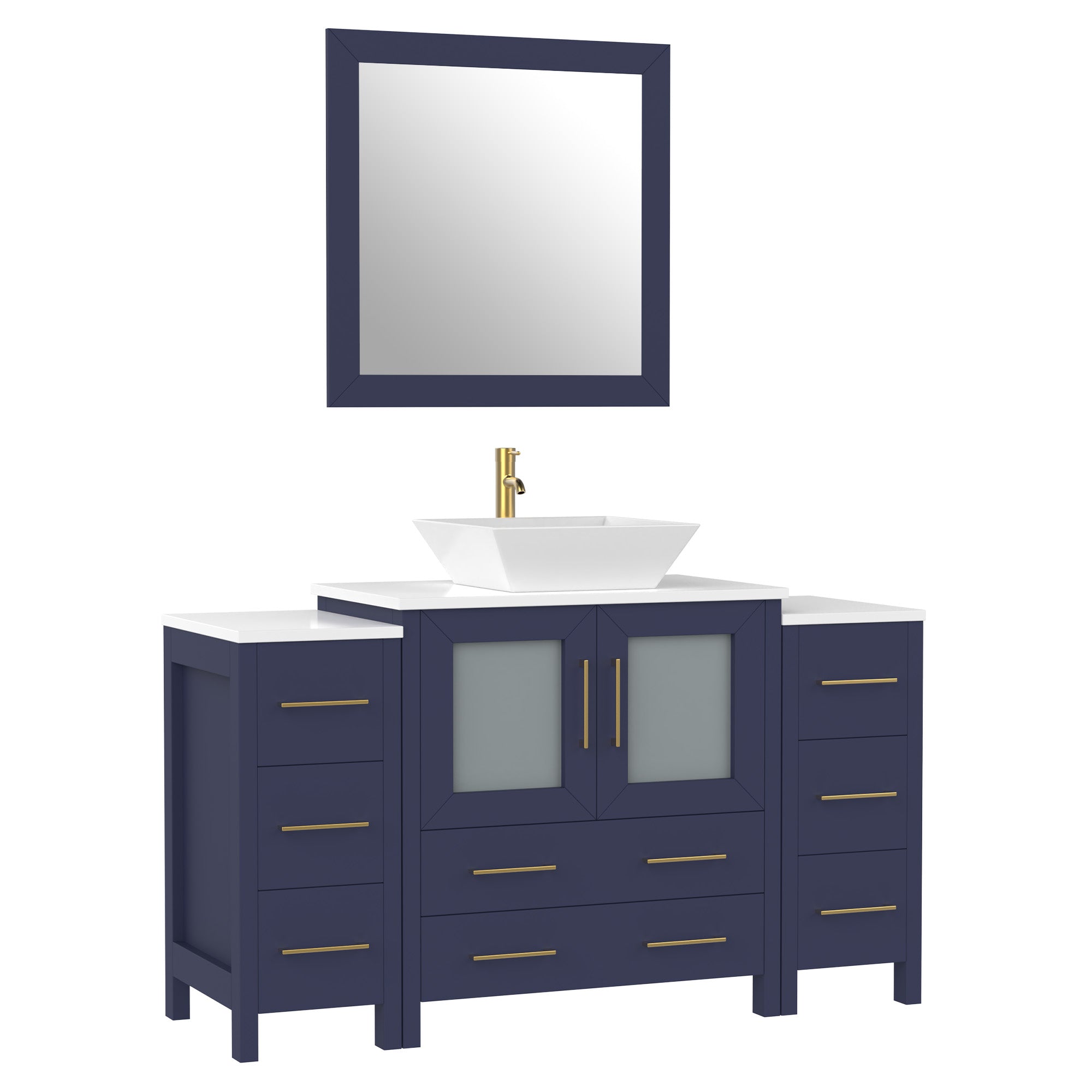 Vanity Art Monaco 54" Single Vessel Sink Bathroom Vanity Set with Sink and Mirror (Engineered Marble Top) - 2 Side Cabinet