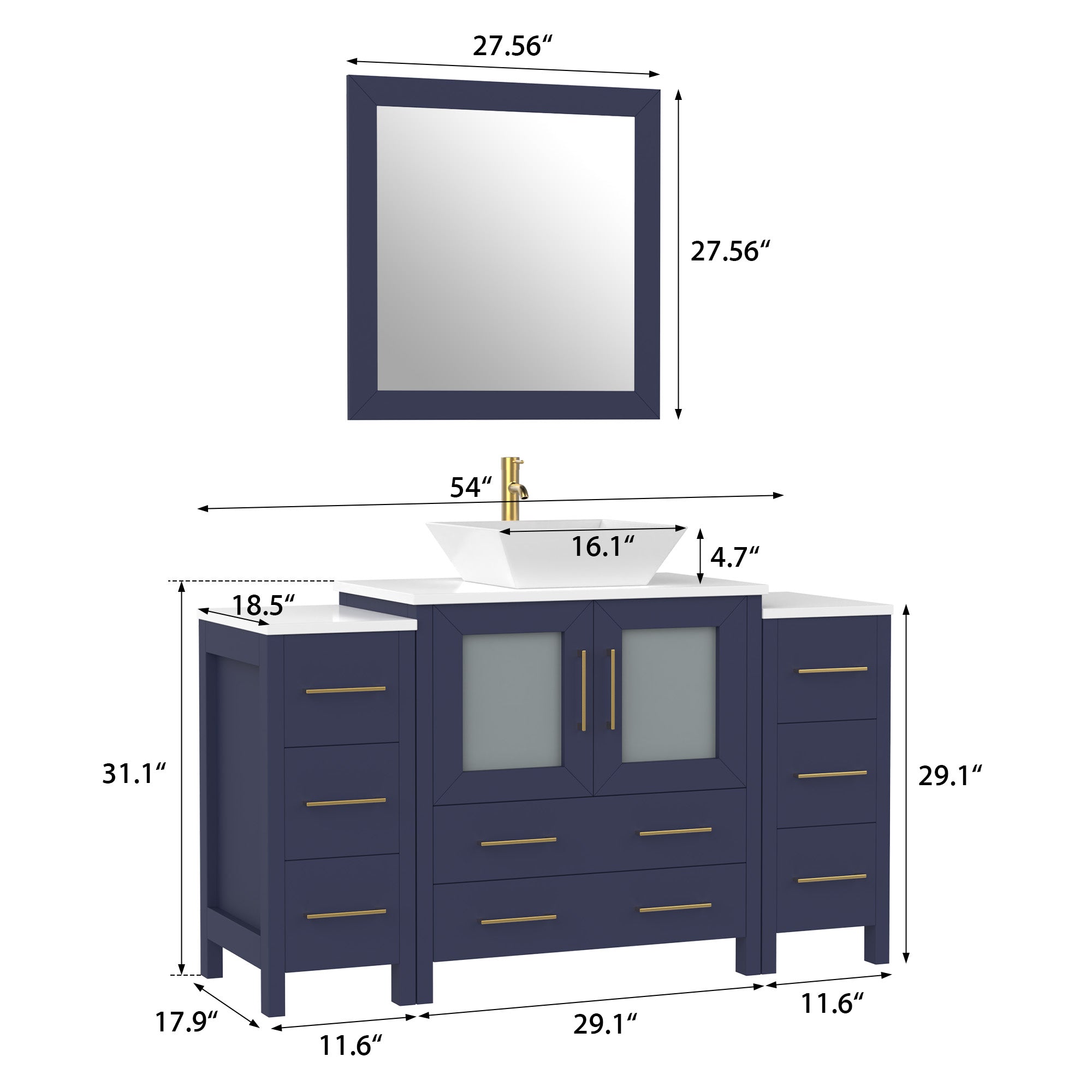 - WALL MOUNTING MIRROR: Each bathroom sink vanity cabinet purchase includes a matching square wall mirror, enhancing the bathroom's aesthetics and cohesion with its color-matched frame