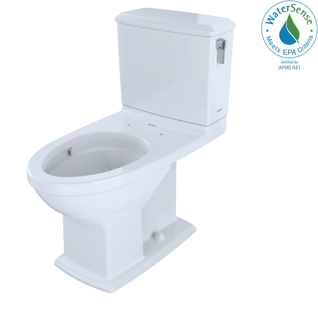 The TOTO Connelly Two-Piece Dual-Max, Dual Flush 1.28 and 0.9 GPF Universal Height Toilet combines contemporary design with innovations in style and water conservation. The Connelly bowl and tank set includes a tank to bowl gasket, tank to bowl hardware, and toilet bolt caps. The Connelly has a concealed trapway, which enhances the elegant look of the toilet and adds an additional level of sophistication. The Connelly features TOTOs 3D TORNADO FLUSH, a hole-free rim design featuring three powerful nozzles that generate a centrifugal, cyclonic rinsing action with the option of 0.9 or 1.28 gallons of water. The right-hand chrome trip lever allows the user to decide the right flush for the appropriate job. Choose between a 0.9 GPF rinse or 1.28 GPF for tougher jobs. This version of the Connelly includes CEFIONTECT, a layer of ceramic glaze that minimizes waste from sticking to ceramic surfaces. This feature, coupled with the 3D TORNADO FLUSH, assists to reduce the frequency of toilet cleanings, minimizing the usage of water, harsh chemicals, and time required for cleaning. The Connelly is designed to feature TOTOs Universal Height which allows for a more comfortable seat position across a wide range of users. The Connelly is ADA compliant and meets the standards for EPA WaterSense, and Californias CEC and CALGreen requirements. Additional items needed for installation and use must be purchased separately: wax ring, toilet mounting bolts, water supply lines, and toilet seat.