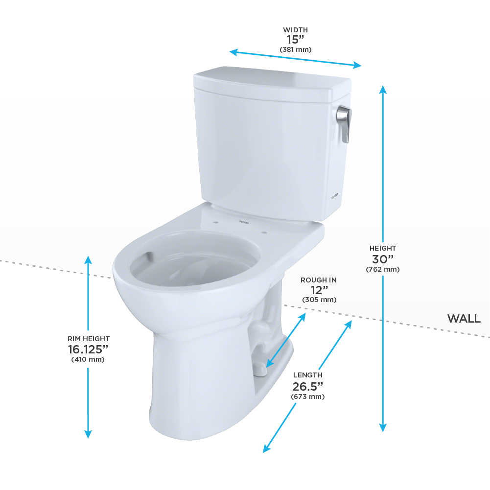 - Purchased separately: wax ring, toilet mounting bolts, water supply lines, and toilet seat