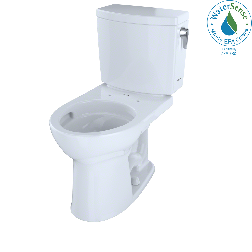 The TOTO Drake II 1G Two-Piece Round 1.0 GPF Universal Height Toilet with CEFIONTECT and Right-Hand Trip Lever is a beautifully designed high profile toilet. The Drake II 1G bowl and tank set includes a tank to bowl gasket, tank to bowl hardware, and toilet bolt caps. The Drake II 1G features TOTOs industry leading 1G technology, offering a powerful flush that flushes completely and fully with only one gallon of water. The Drake II 1G features TOTOs TORNADO FLUSH, a hole-free rim design with dual-nozzles that creates a centrifugal washing action that assists in rinsing the bowl more efficiently. This version of the Drake II 1G includes CEFIONTECT, a layer of ceramic glaze that minimizes waste from sticking to ceramic surfaces. This feature, coupled with TORNADO FLUSH, assists to reduce the frequency of toilet cleanings, minimizing the usage of water, harsh chemicals, and time required for cleaning. The Drake II 1G is designed in TOTOs Universal Height, which allows for a more comfortable seat position across a wide range of users. This version of the Drake II 1G has a right-hand chrome trip lever. The Drake II 1G is ADA compliant and meets the standards for EPA WaterSense, and Californias CEC and CALGreen requirements. Additional items needed for installation and use must be purchased separately: wax ring, toilet mounting bolts, water supply lines, and toilet seat.