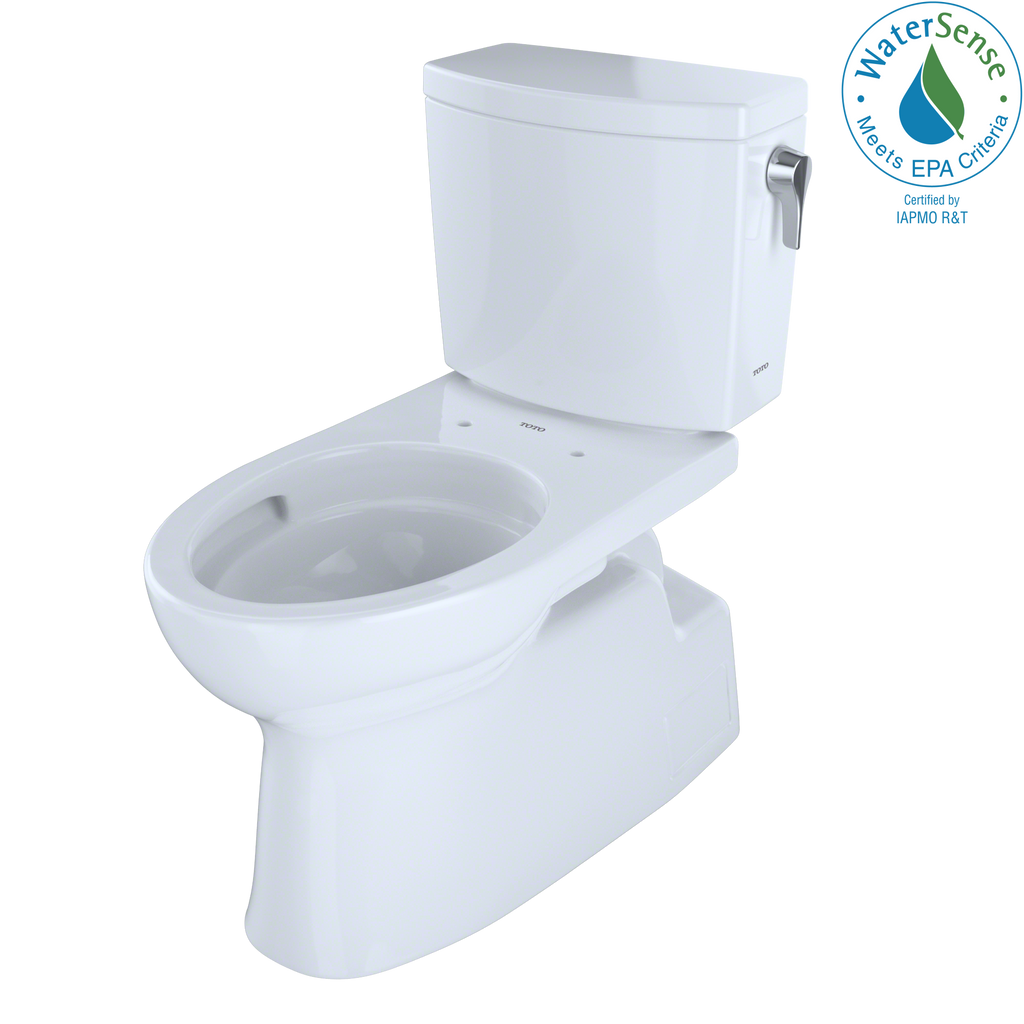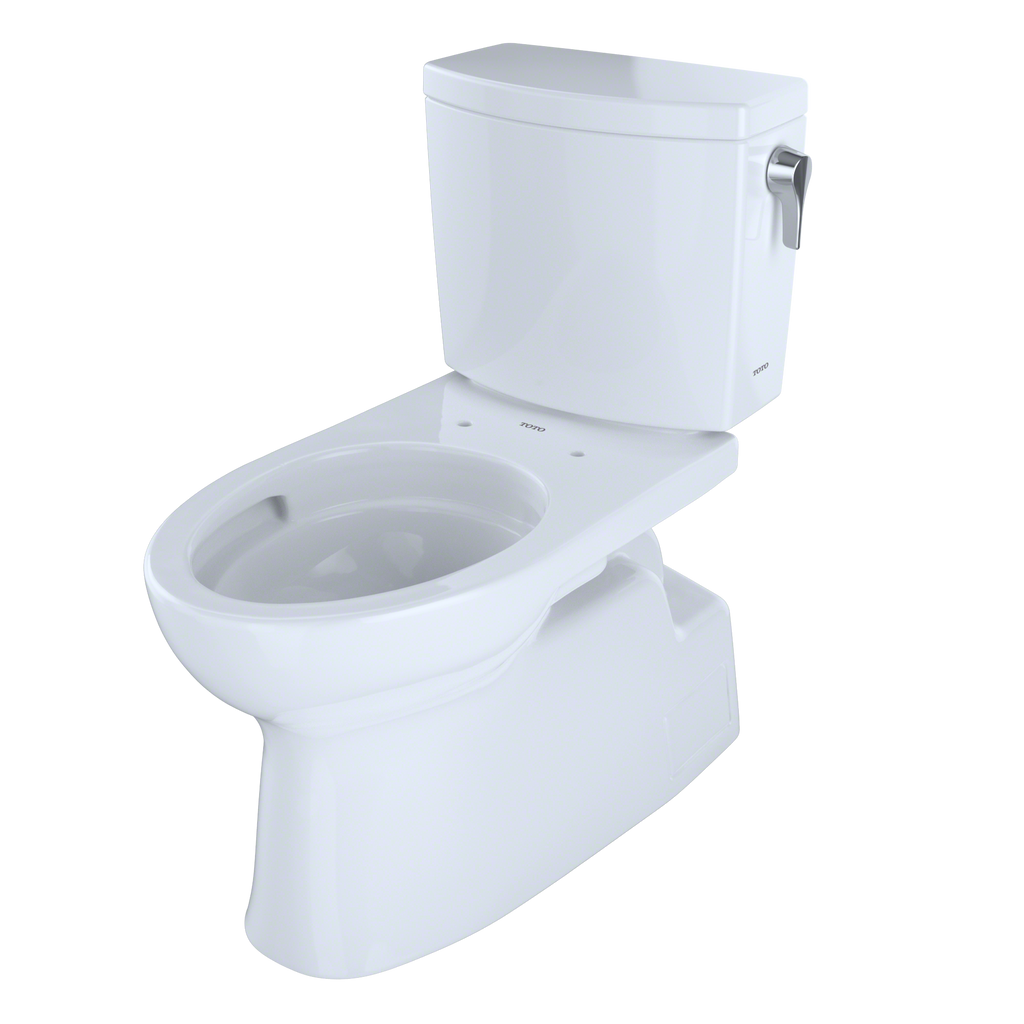 The TOTO Vespin II 1G Two-Piece Elongated 1.0 GPF Universal Height Skirted Toilet with CEFIONTECT and Right-Hand Trip Lever is a beautifully designed high profile toilet. The Vespin II bowl and tank set includes tank to bowl hardware, a tank to bowl gasket, toilet bolt caps, and unifit outlet connection for 12" rough-in. The Vespin II may be adapted for 10" or 14" rough-in with the purchase of a separately sold rough-in. The skirted design of the Vespin II 1G conceals the trapway, which enhances the elegant look of the toilet and adds an additional level of sophistication. Skirted design toilets also minimize the need to reach behind the bowl to clean the nooks and crannies of the exterior trapway. The Vespin II 1G features TOTOs industry leading 1G technology, offering a powerful flush that flushes completely and fully with only one gallon of water. The Vespin II 1G features TOTOs TORNADO FLUSH, a hole-free rim design with dual-nozzles that creates a centrifugal washing action that assists in rinsing the bowl more efficiently. This version of the Vespin II 1G includes CEFIONTECT, a layer of ceramic glaze that minimizes waste from sticking to ceramic surfaces. This feature, coupled with TORNADO FLUSH, assists to reduce the frequency of toilet cleanings, minimizing the usage of water, harsh chemicals, and time required for cleaning. The Vespin II 1G is designed in TOTOs Universal Height, which allows for a more comfortable seat position across a wide range of users. This version of the Vespin II 1G has a right-hand chrome trip lever. The Vespin II 1G is ADA compliant and meets the standards for EPA WaterSense, and Californias CEC and CALGreen requirements. Additional items needed for installation and use must be purchased separately: wax ring, toilet mounting bolts, water supply lines, and toilet seat.