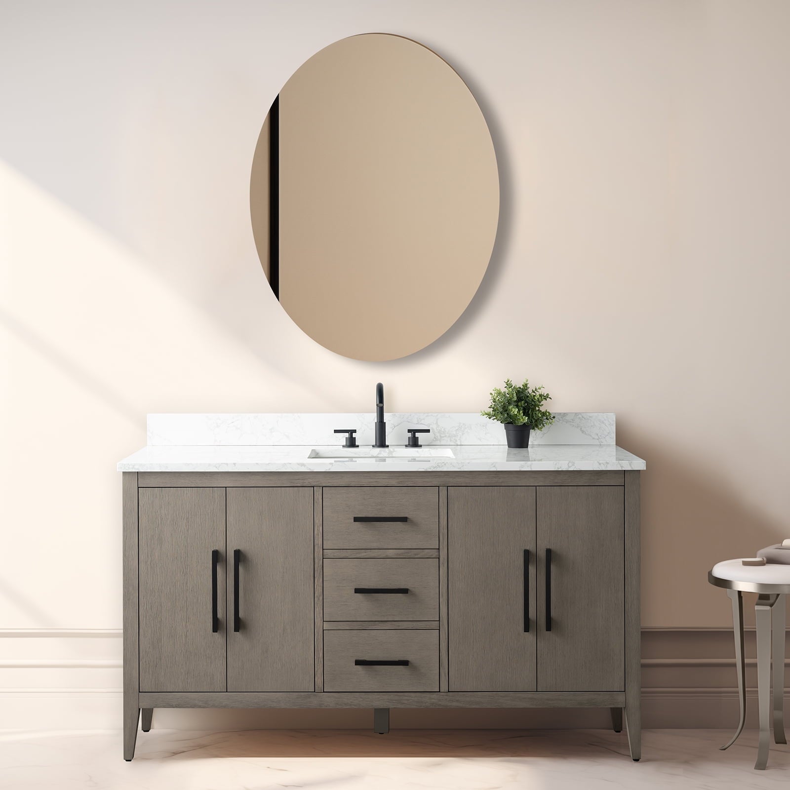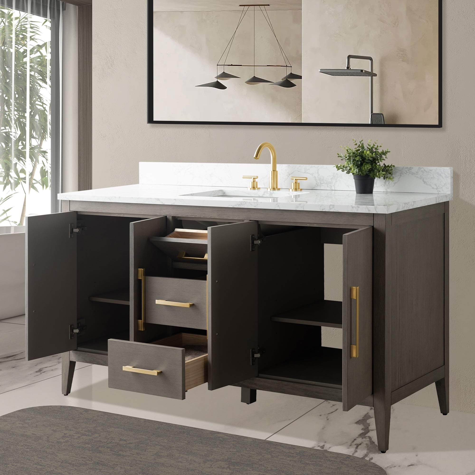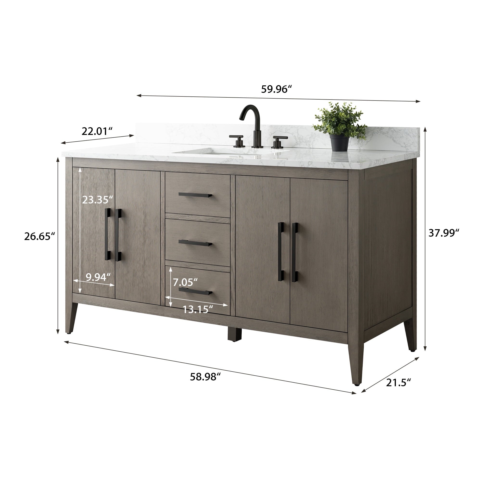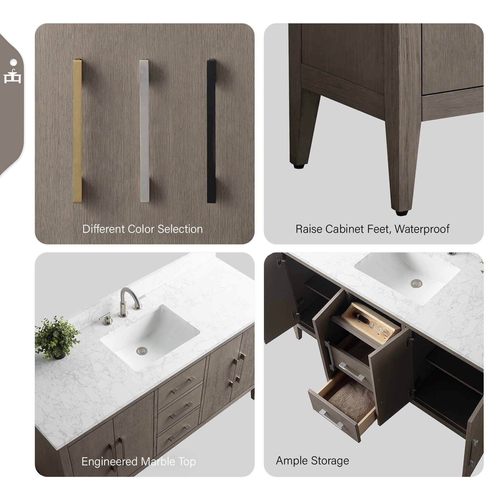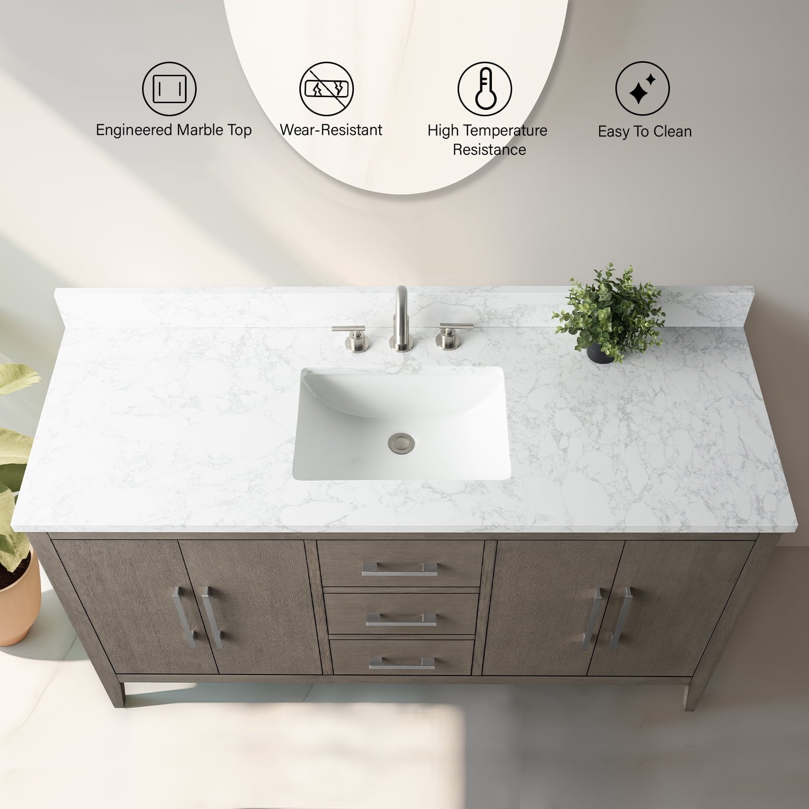 Vanity Art Renzo 60" Single Sink Bathroom Vanity Cabinet with Engineered Marble Top