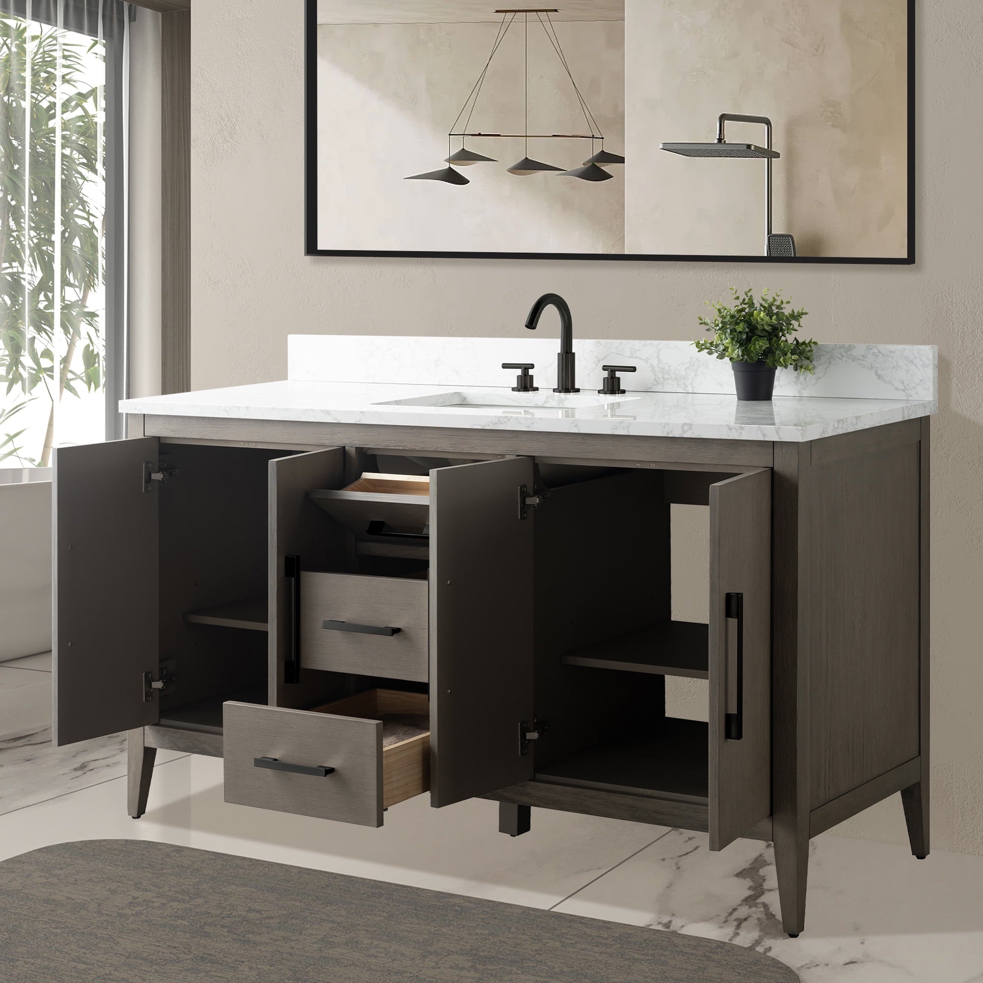 - SMART STORAGE SOLUTIONS: Enjoy ample storage space with a flip down tray, adjustable shelves, and drawers designed for these bathroom vanities to keep your essentials organized and easily accessible