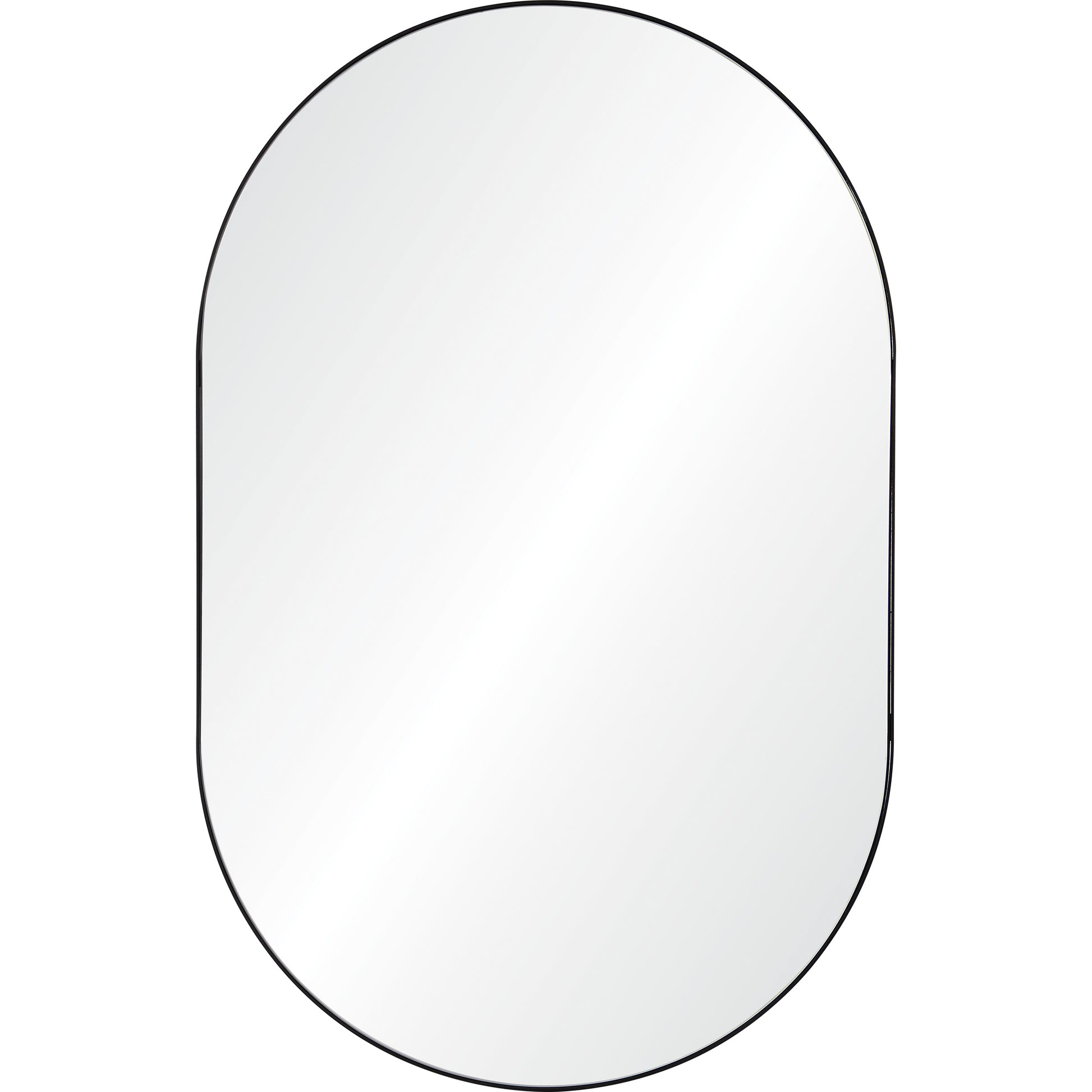 Simple, sleek and high style. This oval-shaped mirror has a minimal black powder coated iron frame. The look is modern, letting the reflection take center-stage.